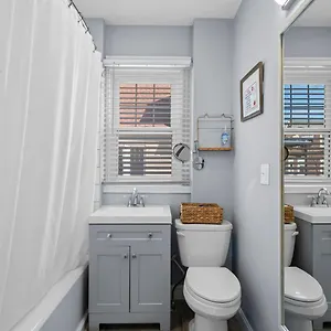 Guests can make use of an additional toilet and a shower in Roslindale Village Condos apartment.
